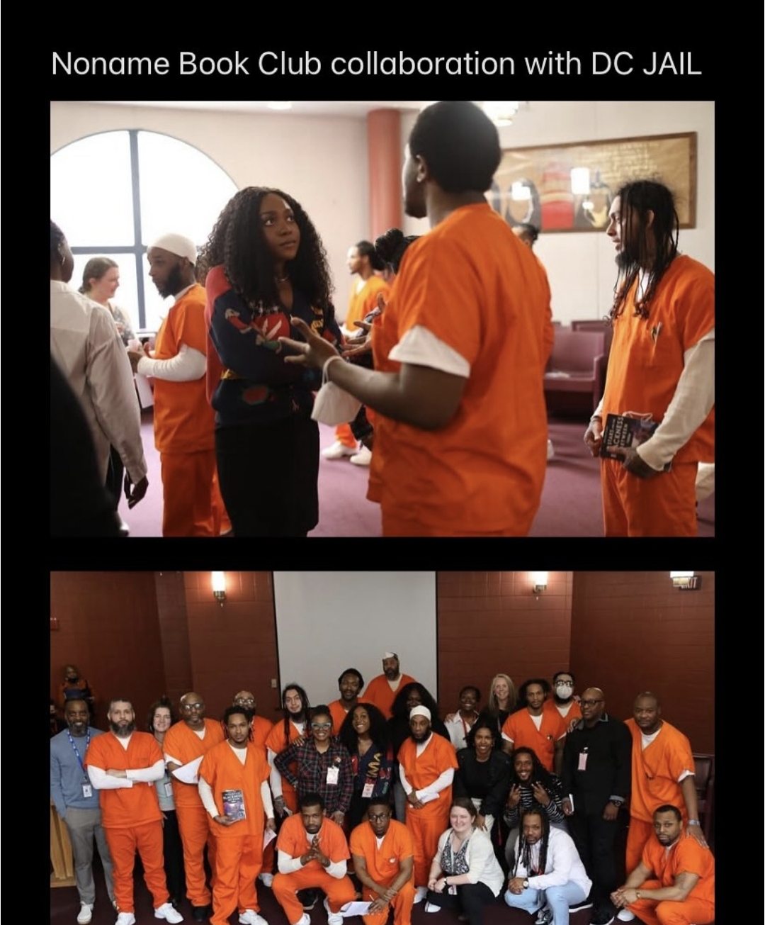 Noname glisse des livres entre les barreaux